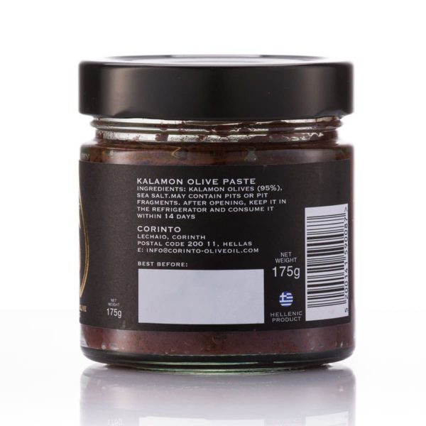 Kalamon Olive Paste is a natural blend of Corinthian olives and salt, making it an excellent olive spread. It imparts an immediate flavor and will satisfy even the most demanding palate.